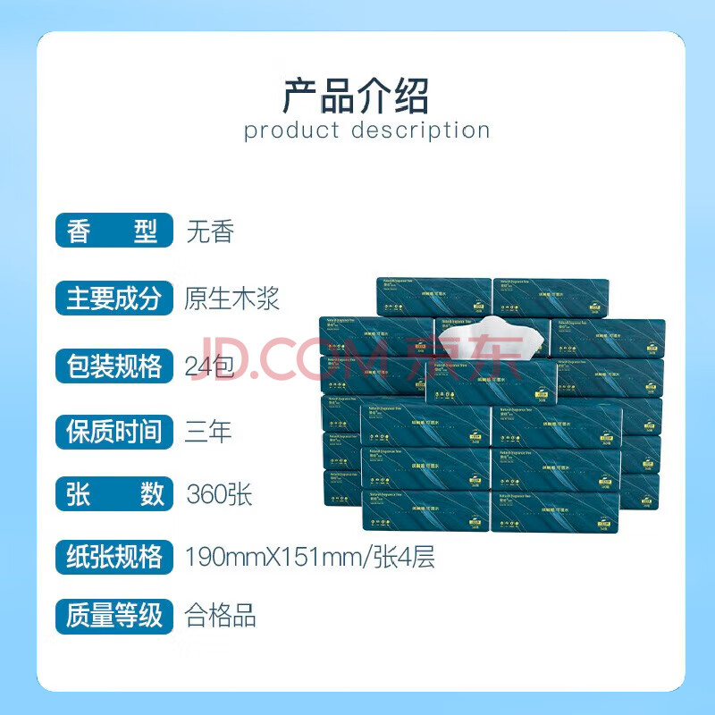 商品相册:曼维抽纸 绒触感4层90抽*24包M码 可湿水纸巾 大号餐巾纸面巾纸整箱装第