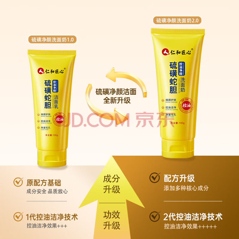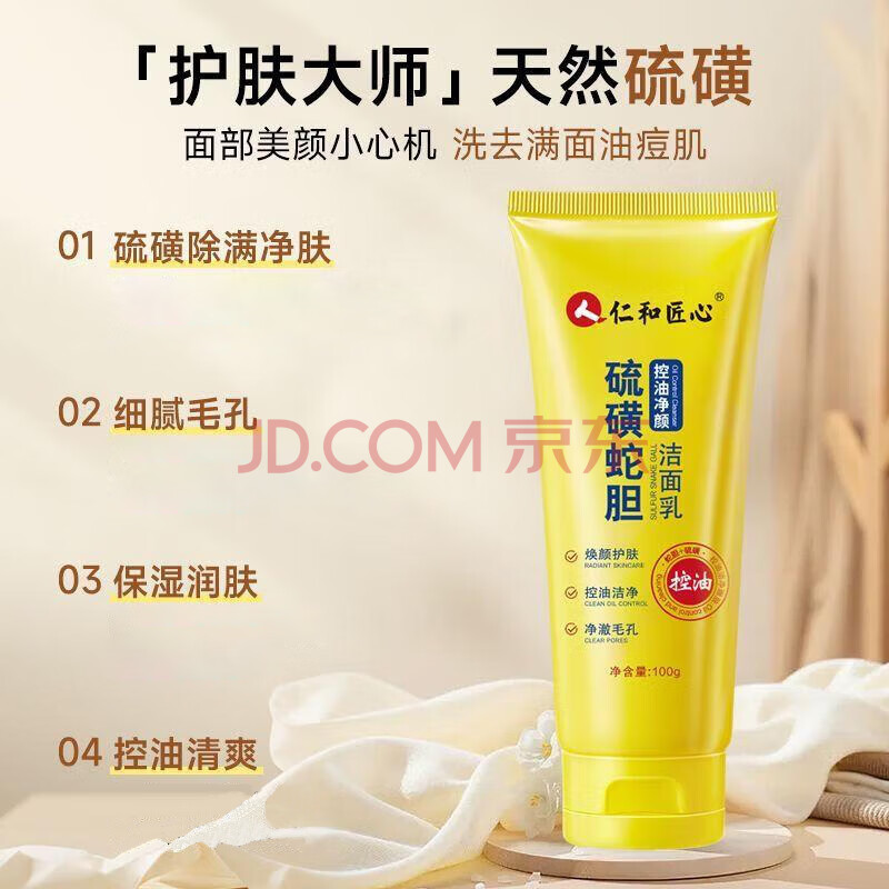 商品相册:仁和匠心硫磺洗面奶控油净颜除满抽去角质收缩毛孔100g第