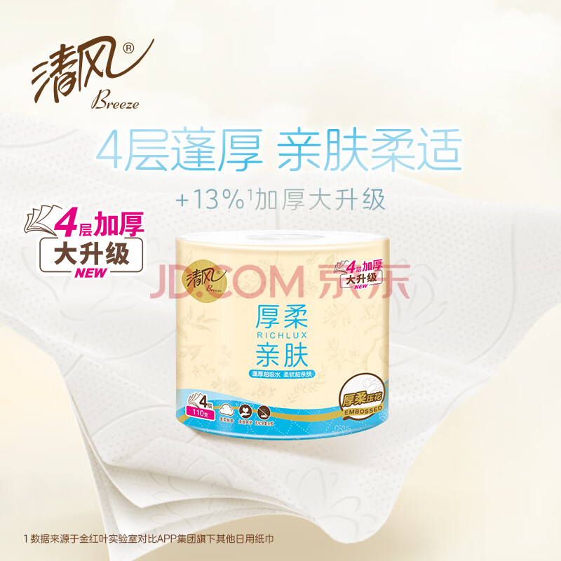 商品相册:清风有芯卷纸 厚柔4层110克*27卷 卫生纸 纸巾 箱装 厕纸 卷筒纸第