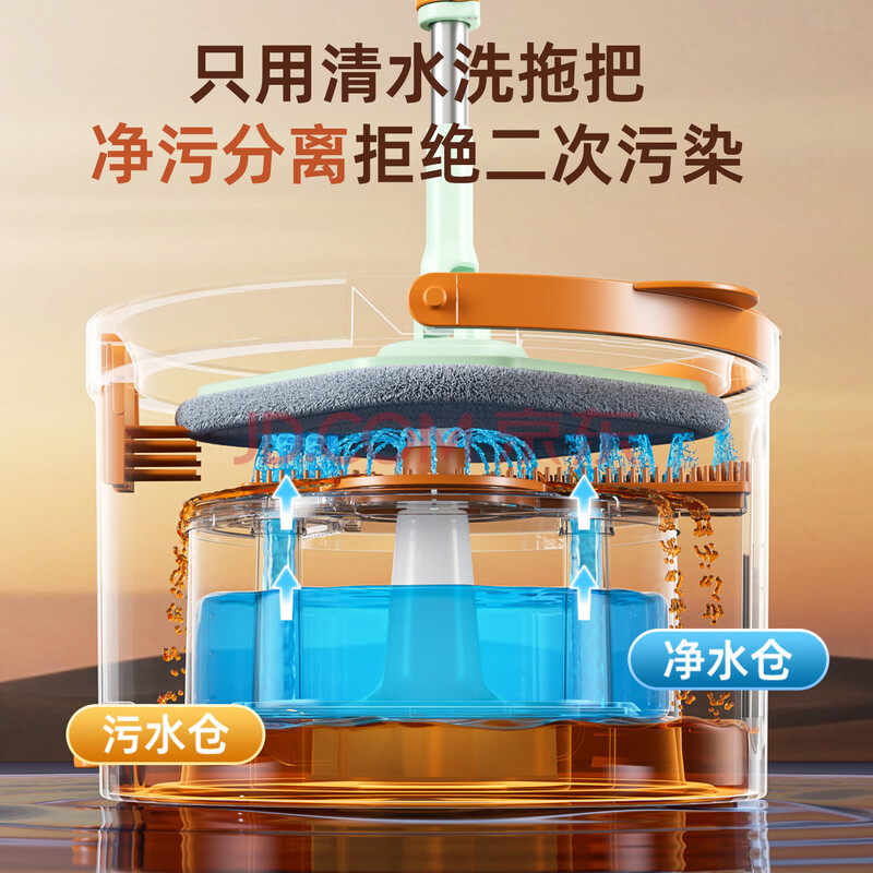 商品相册:美添乐(HoMettler)净污分离旋转拖把2拖布家用一拖净免手洗2026旋转拖带桶一套平板第