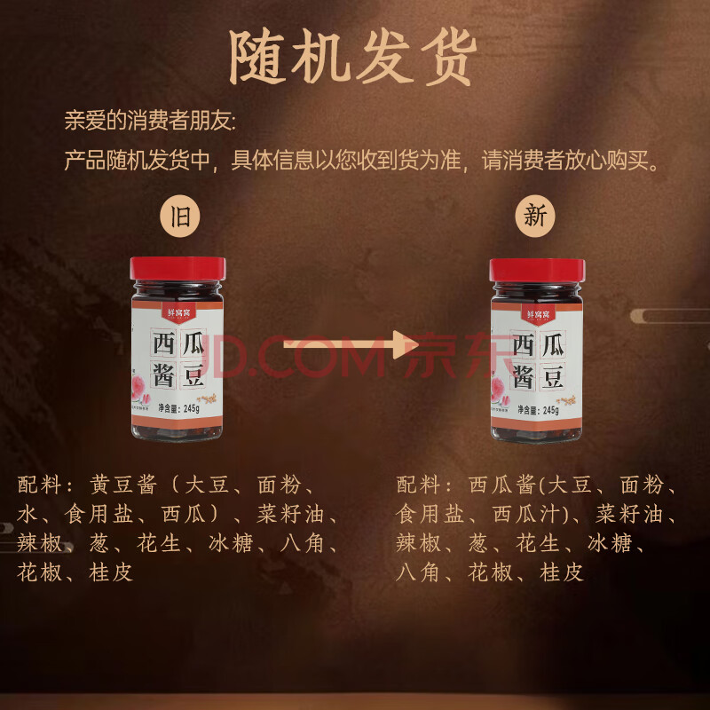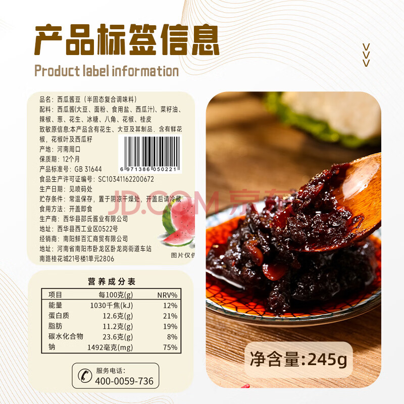 商品相册:鲜窝窝 西瓜酱豆245g 黄豆瓣酱豆子瓜豆酱豆糁大豆酱河南特产夹馍拌饭酱第