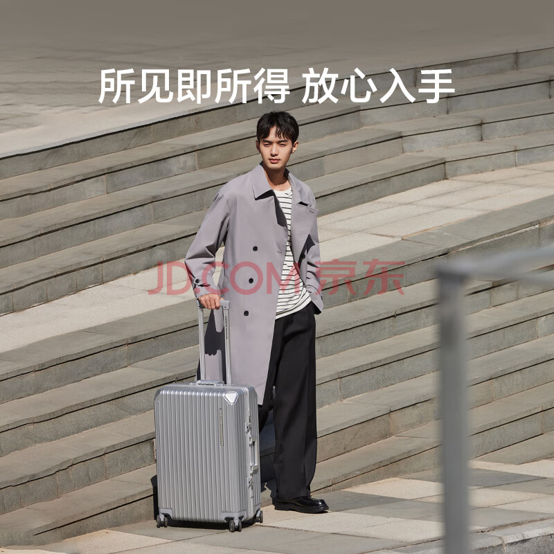 商品相册:美旅箱包行李箱20英寸简约时尚拉杆箱男女旅行箱框架箱银色NH7密码箱包第