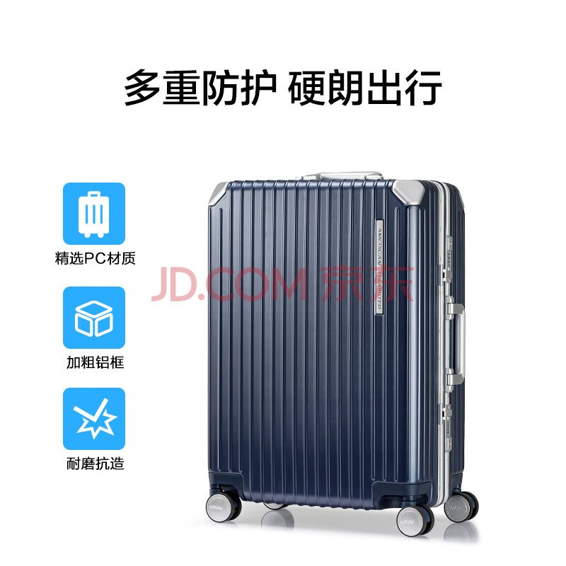 商品相册:美旅行李箱20英寸铝框拉杆箱商务旅行箱PC材质耐磨密码箱 NH7深蓝第