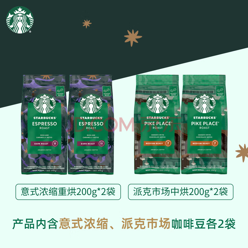 商品相册:星巴克(Starbucks)精品烘焙咖啡豆100%阿拉比卡豆爆款4袋共800g 口粮豆 手冲黑咖啡第