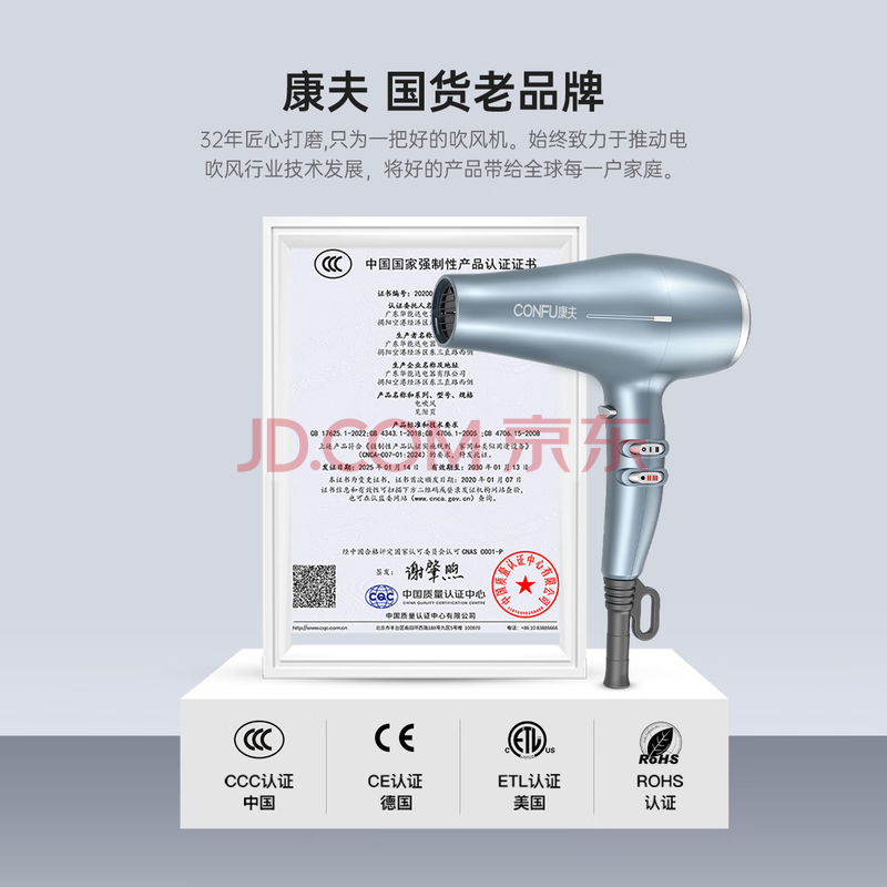商品相册:康夫(CONFU)(CONFU)家用电吹风机2300W大功率强劲大风力速干 恒温护发过热保护 发廊理发店吹风筒 KF-8949第