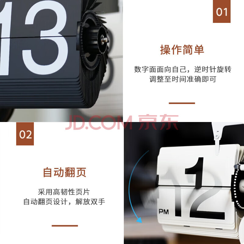 商品相册:摩门(Momen)机械自动翻页时钟 复古北欧简约风钟表客厅个性桌面创意摆件座钟开学季第1张/共8