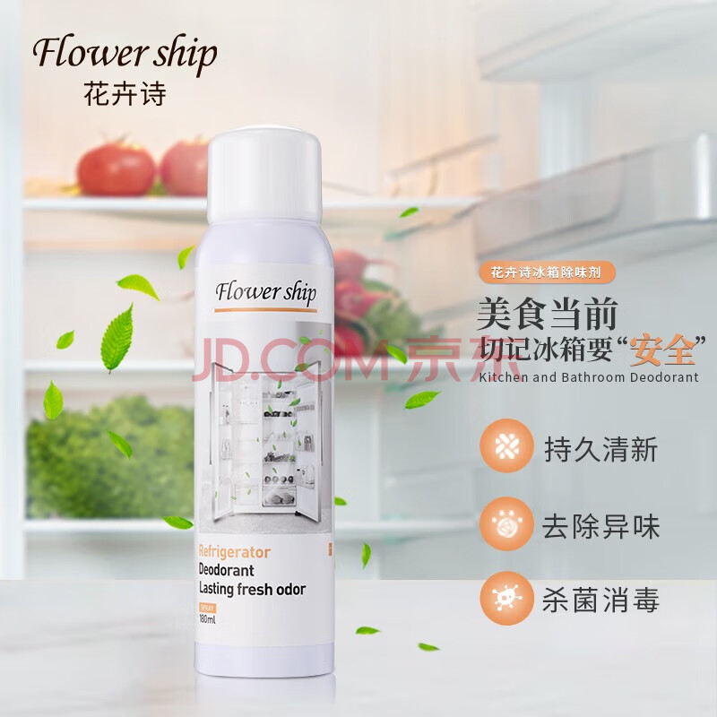 商品相册:花卉诗 Flower ship原装进口 冰箱抑菌祛味剂除味剂家用厨房去异味喷雾多功能除臭清洗剂清新剂180ml第