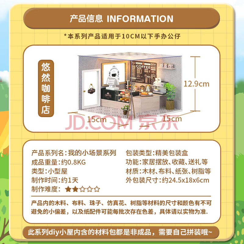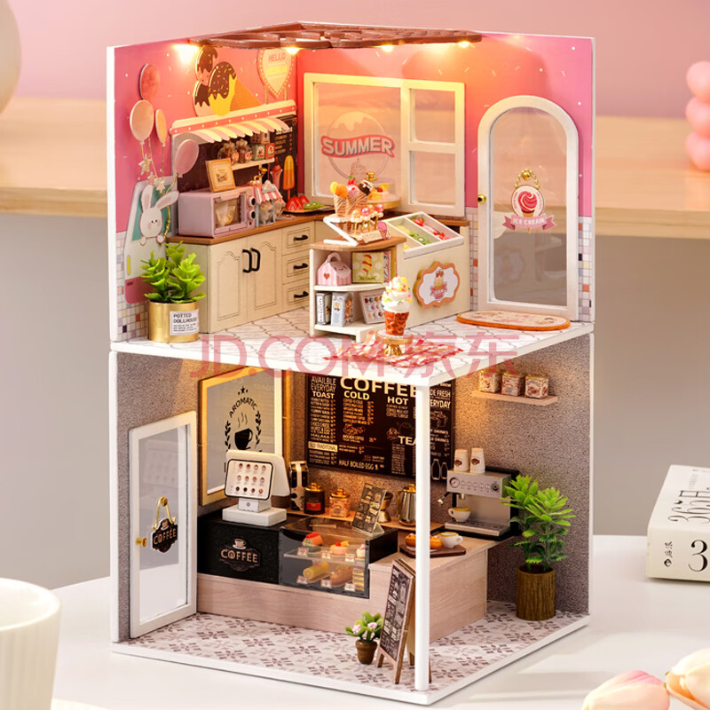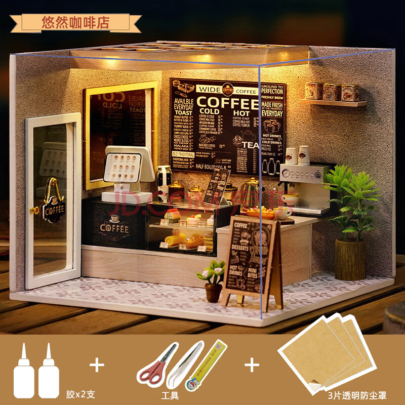 商品相册:我の屋DIY小屋悠然咖啡店手工制作房子迷你玩具房子娃娃屋女友生日礼物第