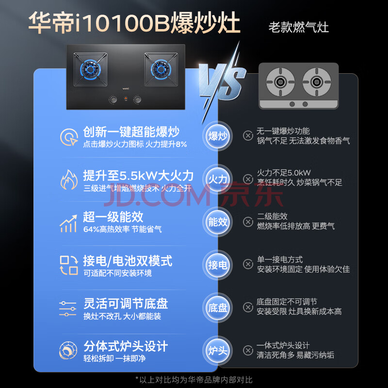 商品相册:华帝小飞碟燃气灶天然气嵌入式一键爆炒5.5kW猛火灶烟灶联动双灶台灶具i10100B第