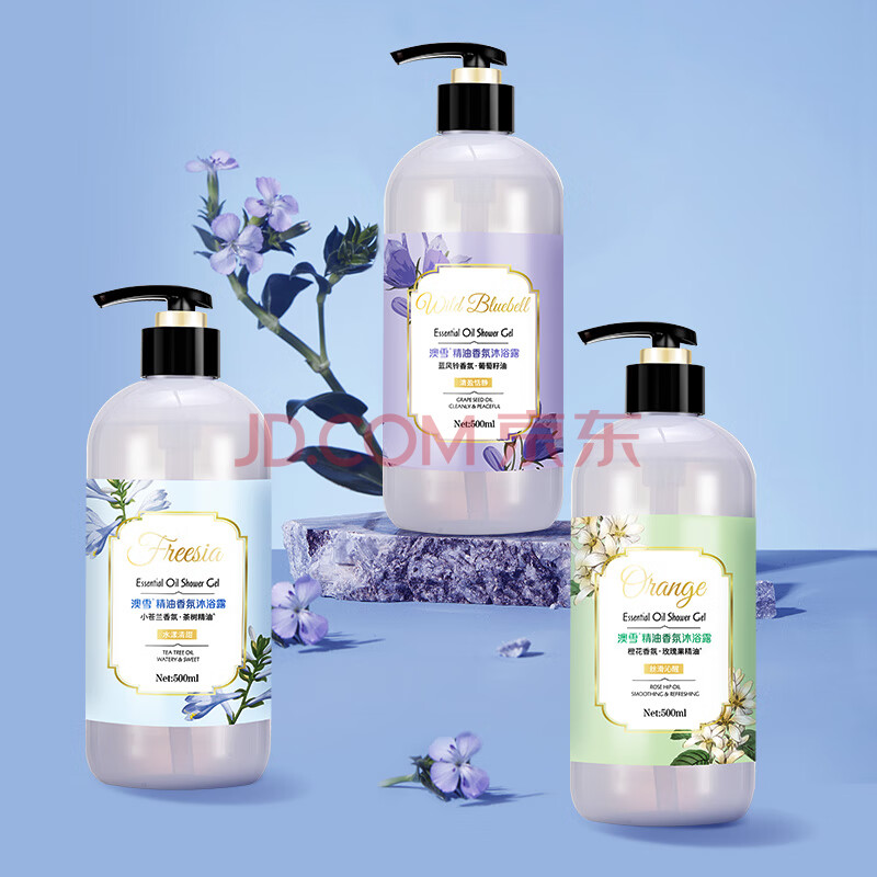 商品相册:澳雪(accen)精油香氛沐浴露套装 500g小苍兰+500g蓝风铃+500g橙花第