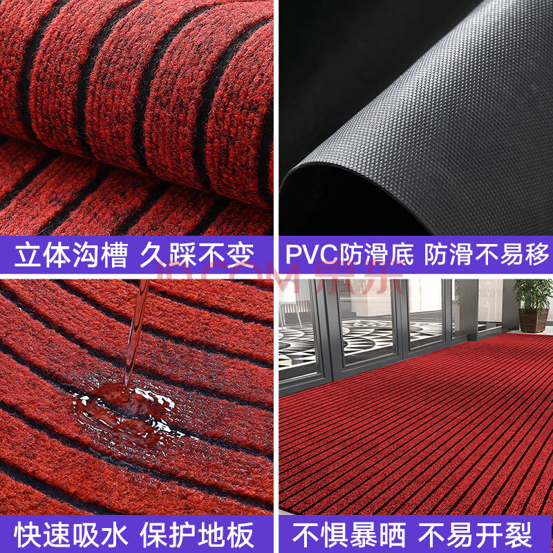 商品相册:柏能条纹入户地垫门口红地毯入户门脚垫进户门口地垫可裁剪120x180cm第