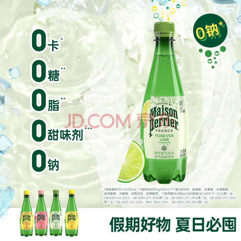 商品相册:Perrier氼颂家巴黎水 法国进口气泡水 0糖0卡0脂 年货礼盒青柠味500ml*6 第