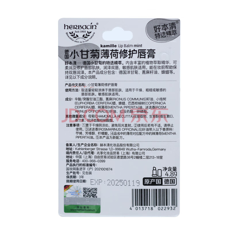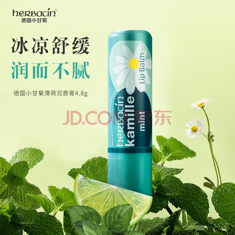 商品相册:Herbacin好本清德国小甘菊薄荷唇膏 4.8g(滋润男士,去死皮,预防干裂)第