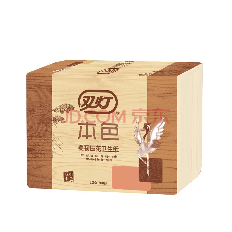 商品相册:双灯 平板纸卫生纸本色压花擦手纸厕纸草纸100张(200层)*8包第