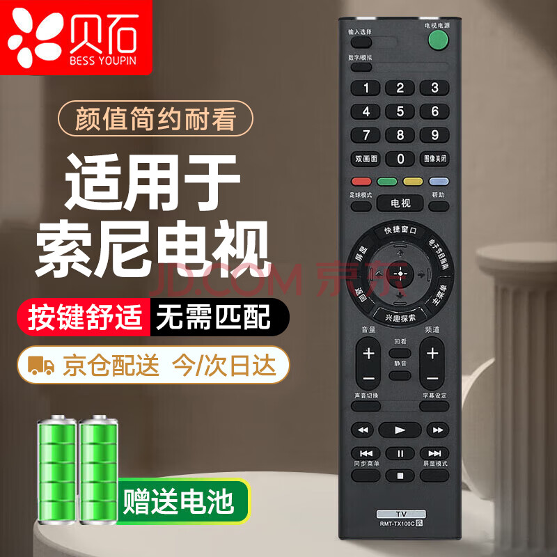 商品相册:贝石 适用于sony索尼电视遥控器RMT-TX100C 通用RMT-TX200C KD-49X8000C 55X/65X8000C 电视遥控板第1张/共8