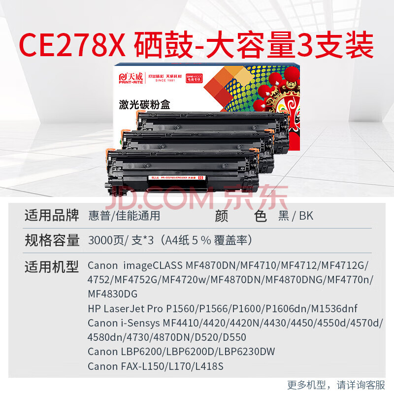 商品相册:天威78a硒鼓CRG328 适用佳能MF4712 4752 LBP6230DN L150惠普 M1536dnf MFP P1606dn打印机粉墨盒 3支装第