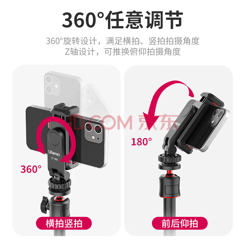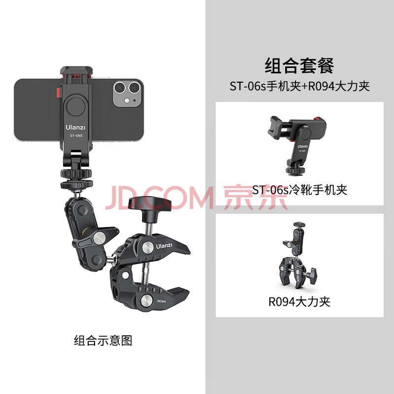 商品相册:ulanzi 优篮子 ST-6S升级款横竖拍旋转冷热靴手机夹大力夹套装取景翻转屏手机VLOG单反相机多功能摄影夹第