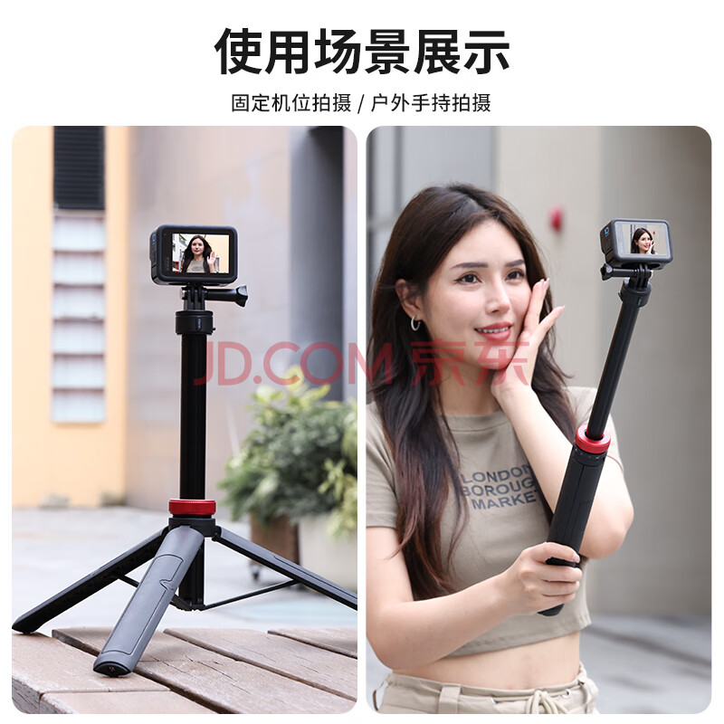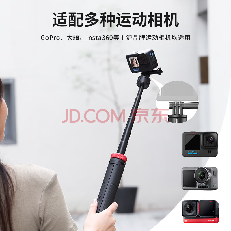 商品相册:ulanzi优篮子Go-Quick II运动相机1.4米延长三脚架大疆action5Pro/4/3自拍杆Gopro13/12通用拍照手柄支架第