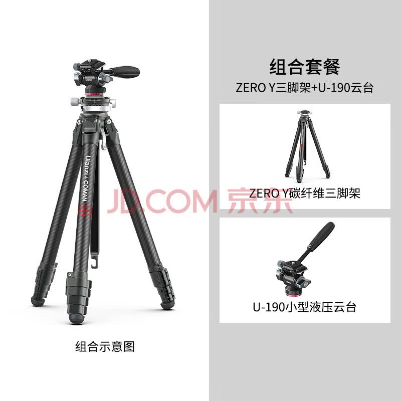 商品相册:ulanzi优篮子 ZERO Y零感旅行户外专业碳纤维三脚架液压云台套装摄像机单反云台摄影拍照便携碗式三角架第