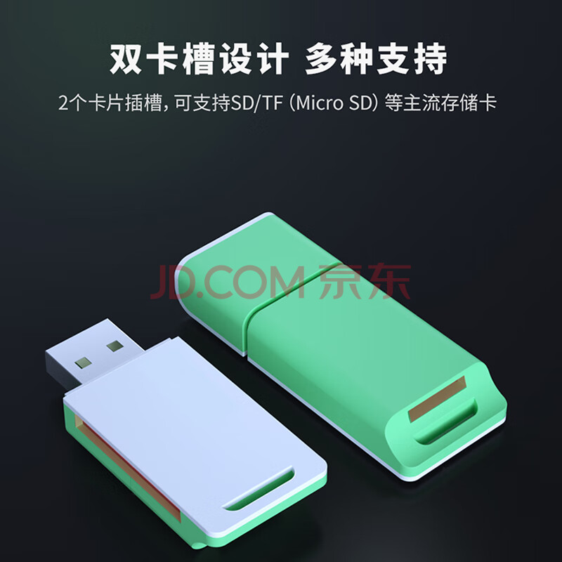 商品相册:DM大迈 USB2.0读卡器 SD/TF二合一 适用电脑车载手机单反相机监控记录仪存储内存卡 绿白色 CR019第