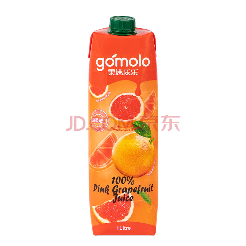 商品相册:果满乐乐(gomolo)塞浦路斯进口红心西柚汁大瓶装100%纯果汁1升*4瓶婚庆宴席聚餐第