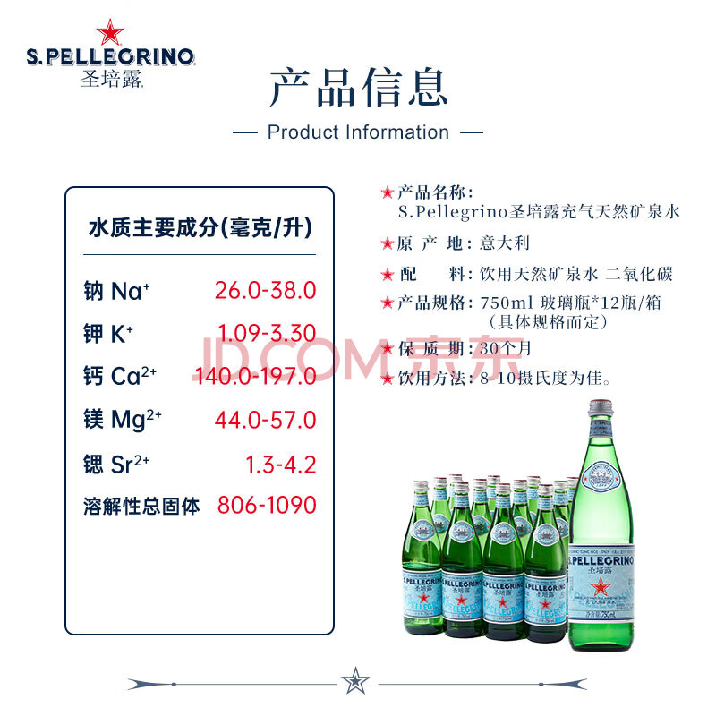 商品相册:圣培露(S.PELLECRINO)意大利含气天然矿泉水气泡水750ml*12瓶第