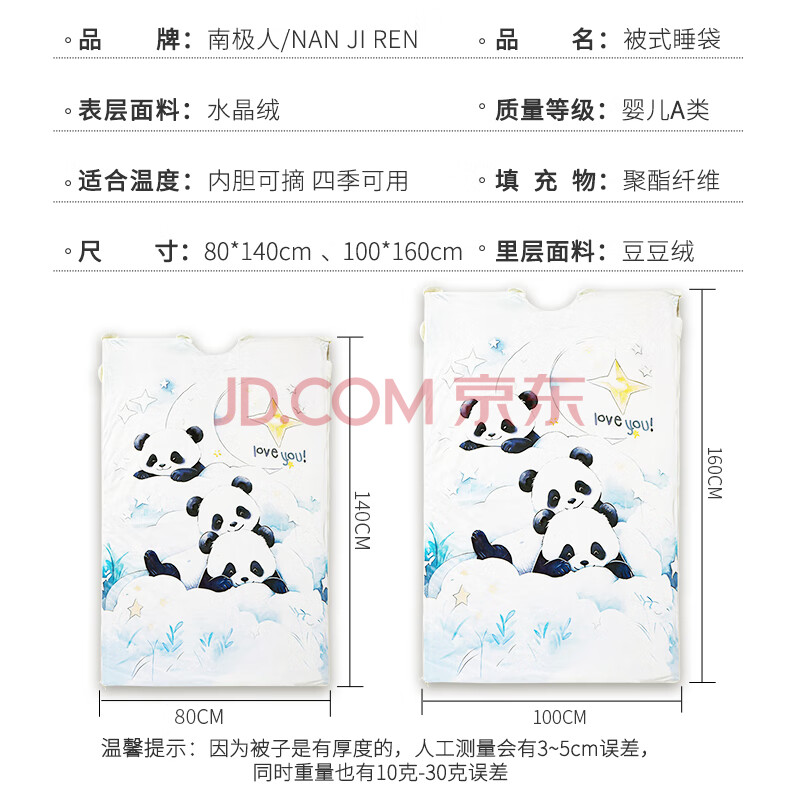 商品相册:南极人(Nanjiren)婴儿睡袋春秋冬季儿童中大童防踢被宝宝四季通用被子100*160cm第
