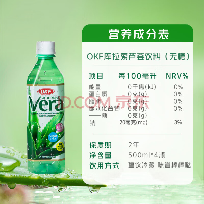 商品相册:OKF韩国进口 库拉索无糖芦荟饮料500ml*4瓶 0糖0脂0卡 含芦荟颗粒第