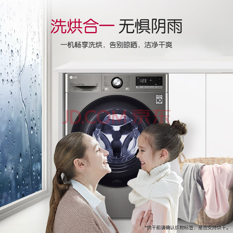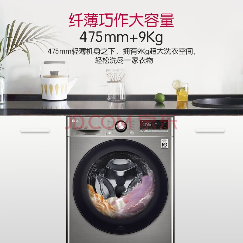 商品相册:LG 超薄嵌入 9KG滚筒洗衣机带烘干一体 全自动家用 AI直驱变频 6种智能手洗 95°高温煮洗 FCY90M2P第