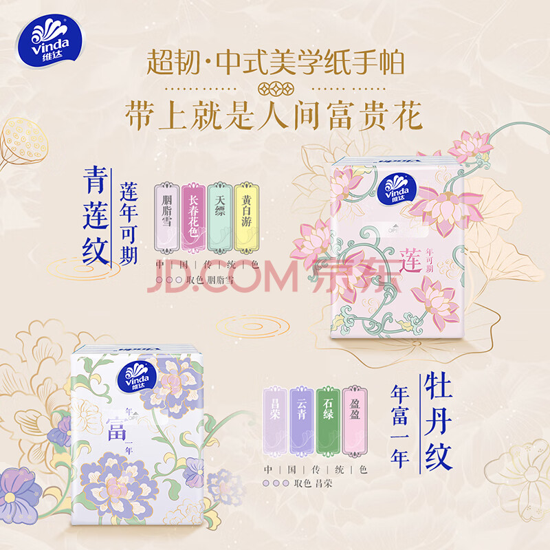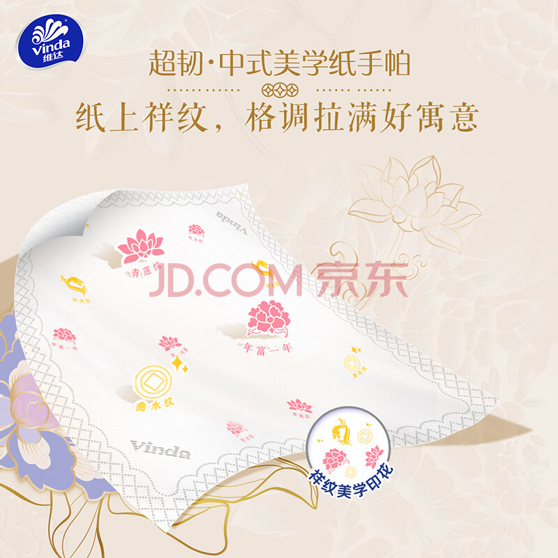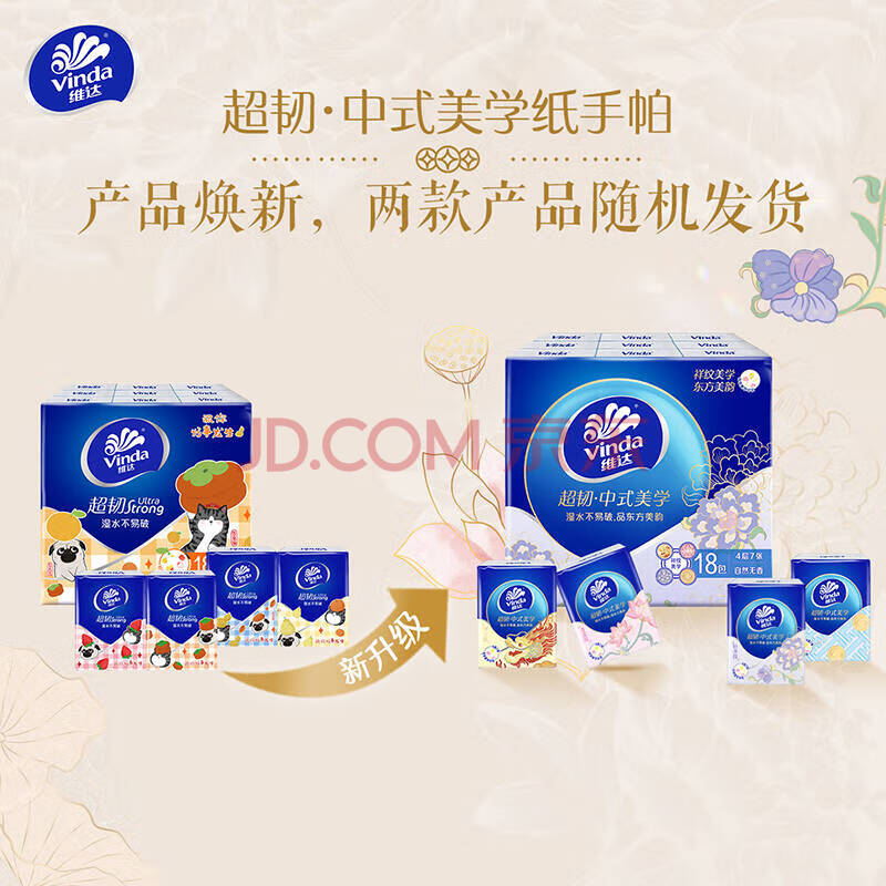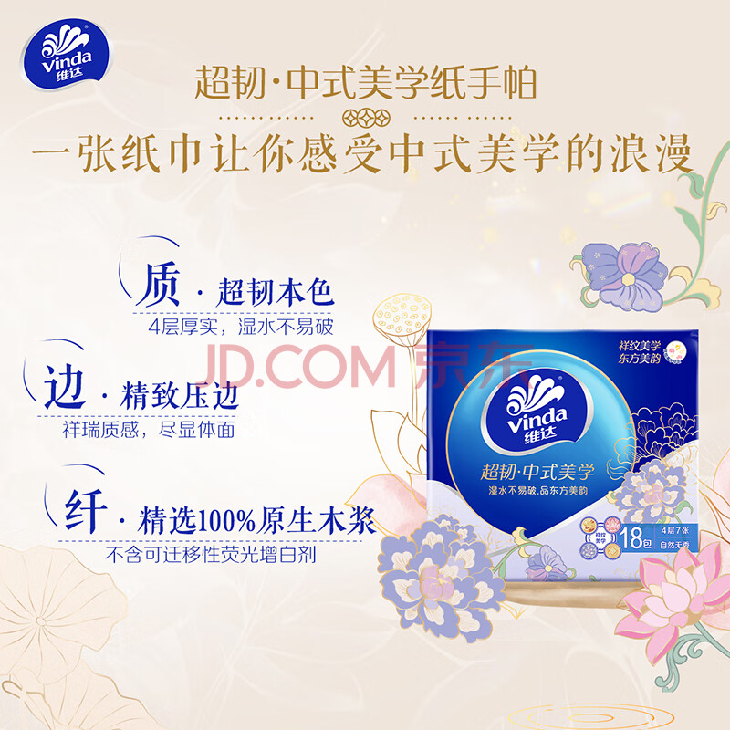 商品相册:维达(Vinda)手帕纸 超韧4层7张*18包 中式美学 湿水不易破第