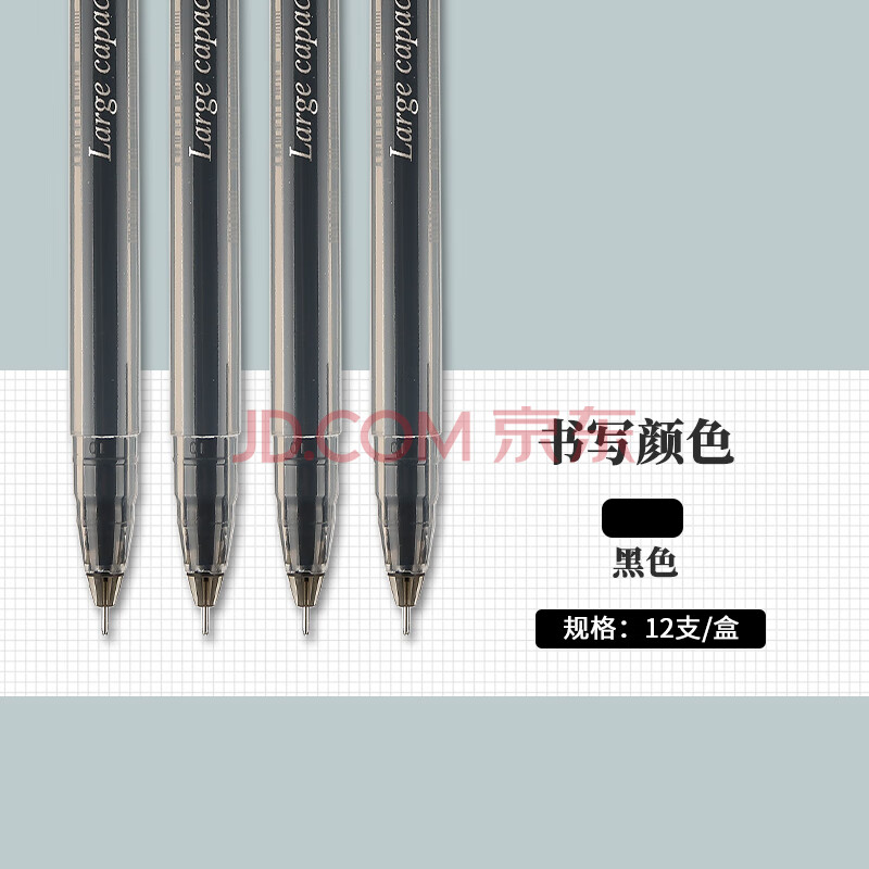 商品相册:晨光(M&G)文具巨能写 拔帽中性笔0.5签字碳素笔商务全针管学生水笔办公用品 大容量黑笔 12支/盒AGPY5501第