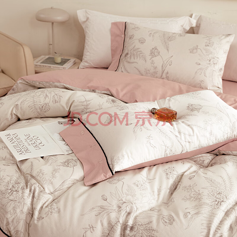 商品相册:Demichel 法式印花四件套纯棉 高端长绒棉全棉床上被套床单 1.5/1.8米床 莫奈粉第