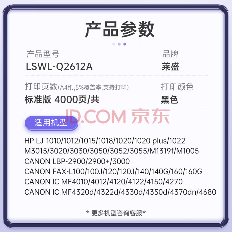 商品相册:莱盛Q2612A硒鼓2支装 适用惠普1010 1012 1015 1018 1020 1020 plus M1005 佳能LBP-2900 2900+粉盒第