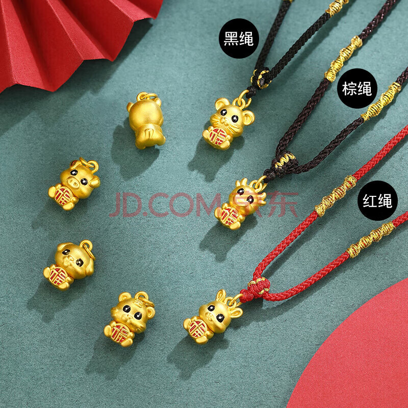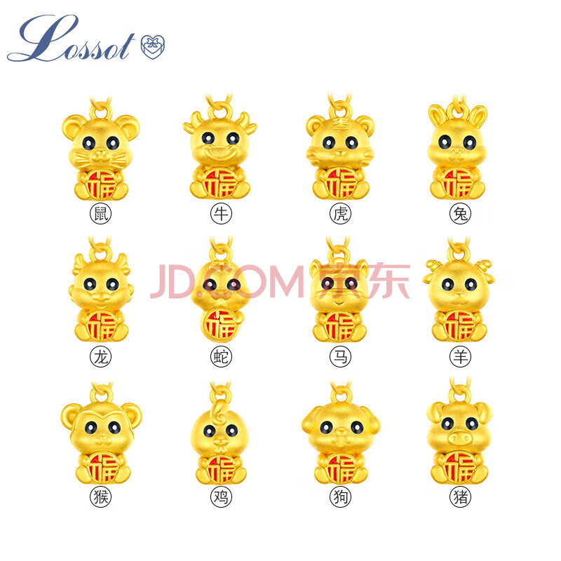 商品相册:Lossot生日礼物本命年足金十二生肖黄金吊坠龙项链3D硬金福龙生肖挂坠第