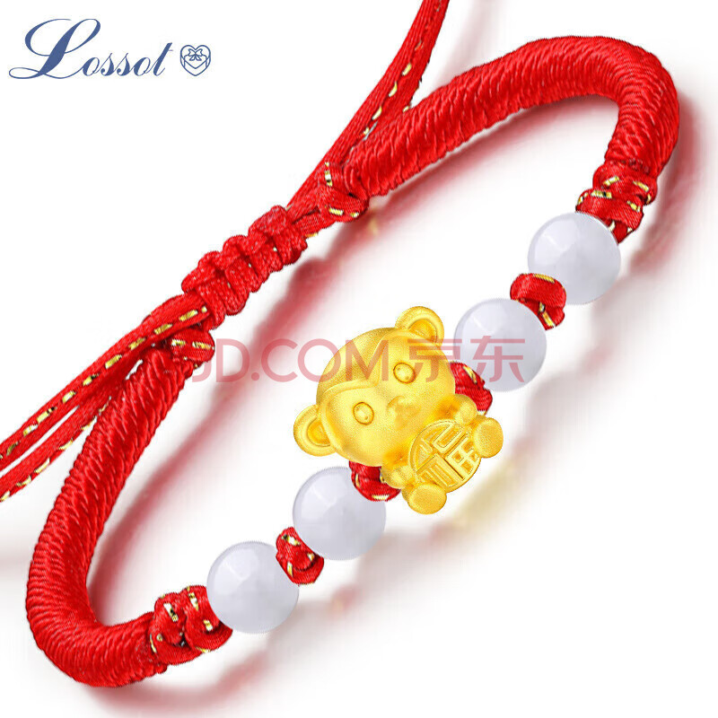 商品相册:Lossot足金十二生肖猴黄金转运珠手链5D硬金猴本命年手链红绳生日礼物第