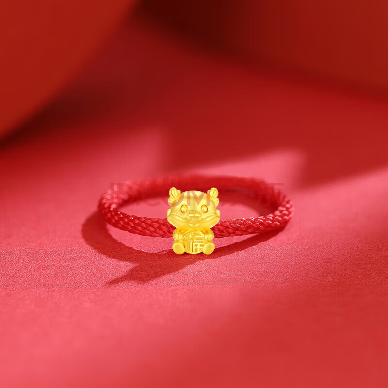 商品相册:Lossot生日礼物本命年足金十二生肖龙转运珠黄金戒指女3D硬金龙编织绳第