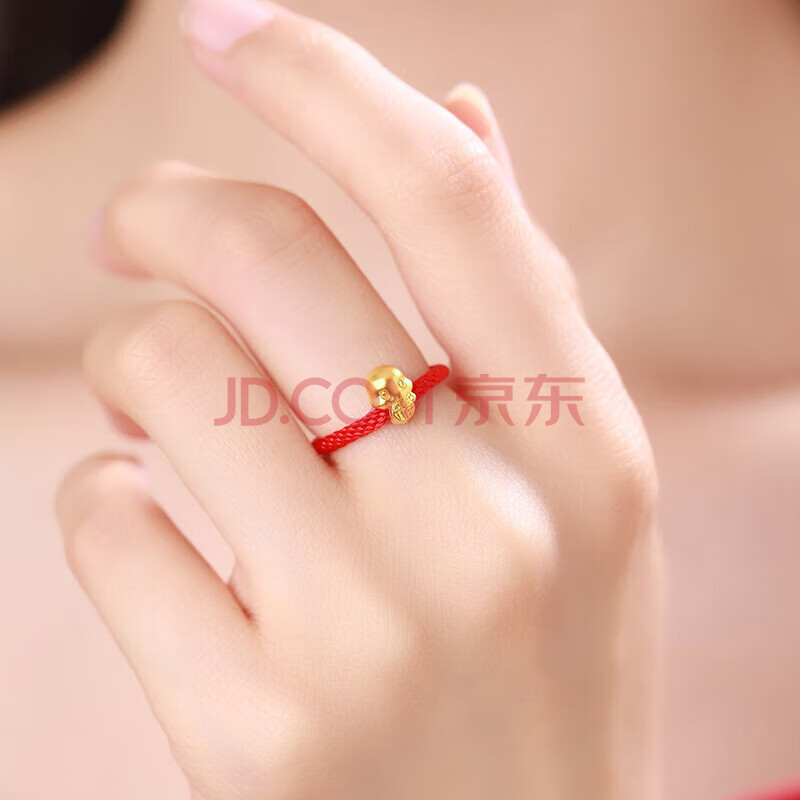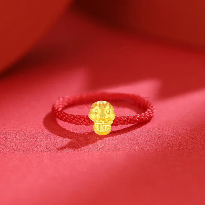 商品相册:Lossot生日礼物本命年足金十二生肖蛇转运珠黄金戒指女3D硬金蛇编织绳第