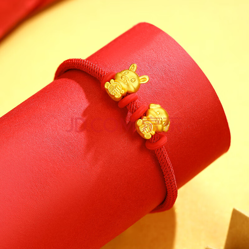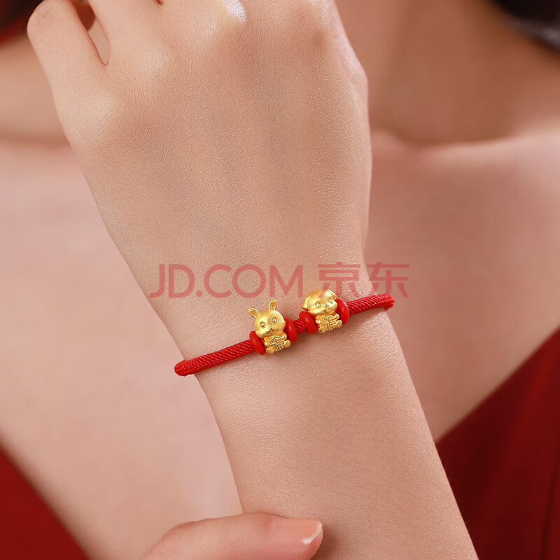 商品相册:Lossot足金六合兔狗生肖黄金手链男女款5D硬金转运珠编织红绳本命年手链第