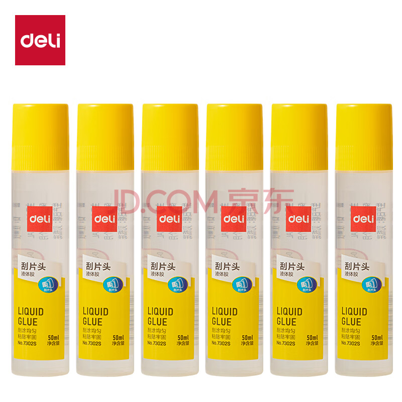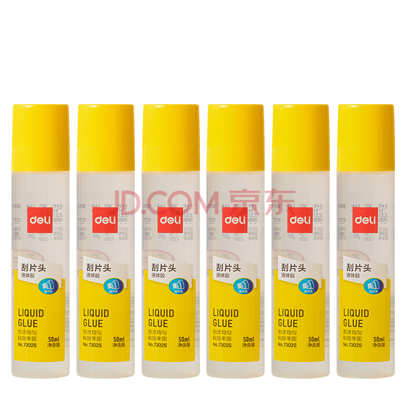 商品相册:得力50ml刷片胶头高透明胶水 可水洗高粘液体胶 学生文具 开学必备学习用品 6支装 办公用品 7302S第