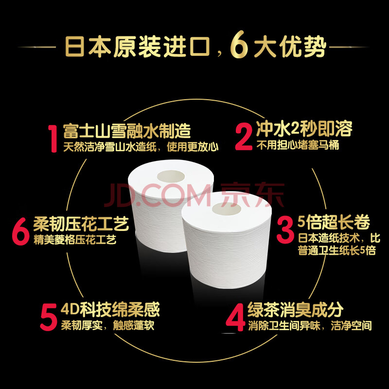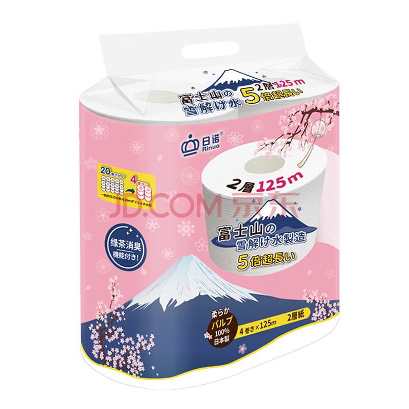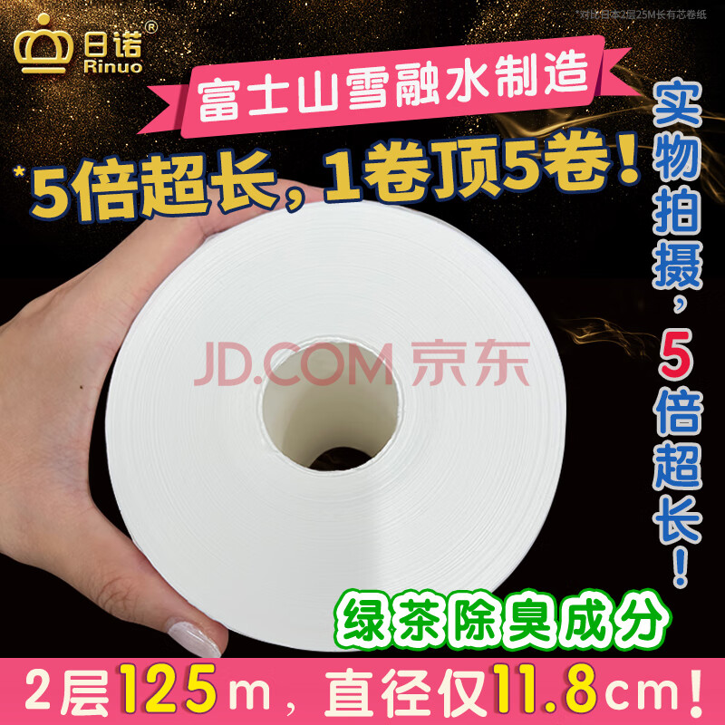 商品相册:日诺(Rinuo)日本进口卫生纸溶水卷纸水溶厕纸家用有芯卷筒纸巾5倍超长1提4卷第