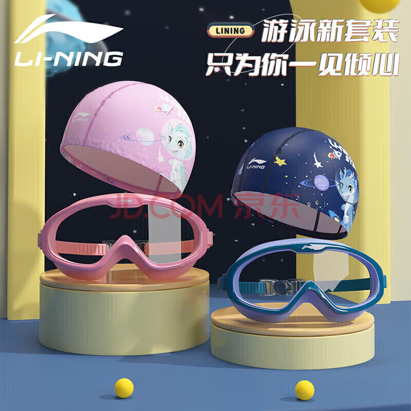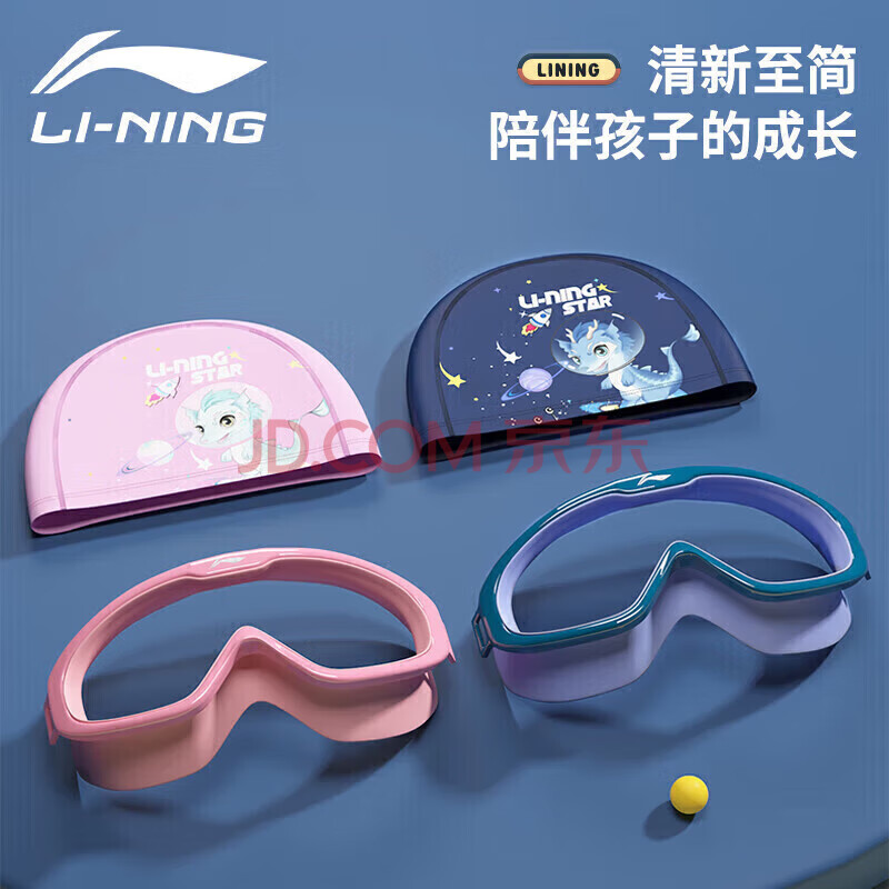 商品相册:李宁(LI-NING) 儿童泳镜女童防雾防水高清透明大框游泳泳镜泳帽两件套319粉色第