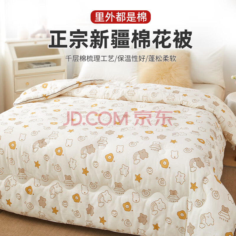 商品相册:梦诗娜100%新疆棉花被纯棉被子棉被被芯单人秋冬被5斤150x200cm 饼干熊第
