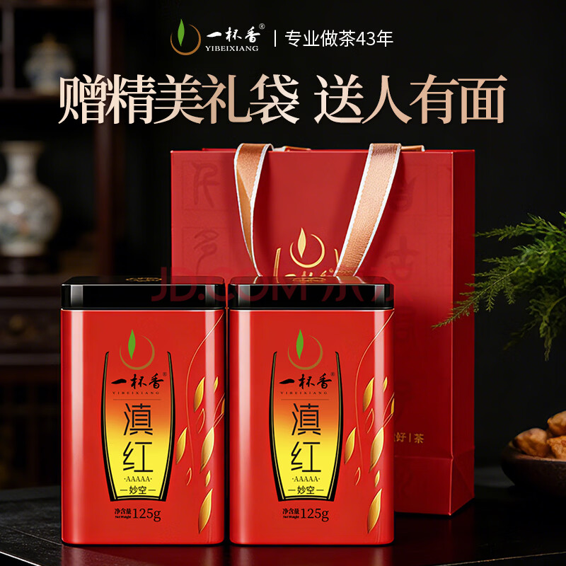 商品相册:一杯香茶叶云南滇红茶大金针特级250g新茶礼盒装金芽金丝自己喝散装第