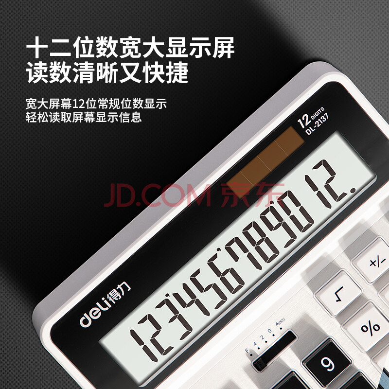 商品相册:得力(deli)双电源电脑按键计算器 12位金属面板桌面计算机 财务金融/银行计算 办公用品 银色2137第