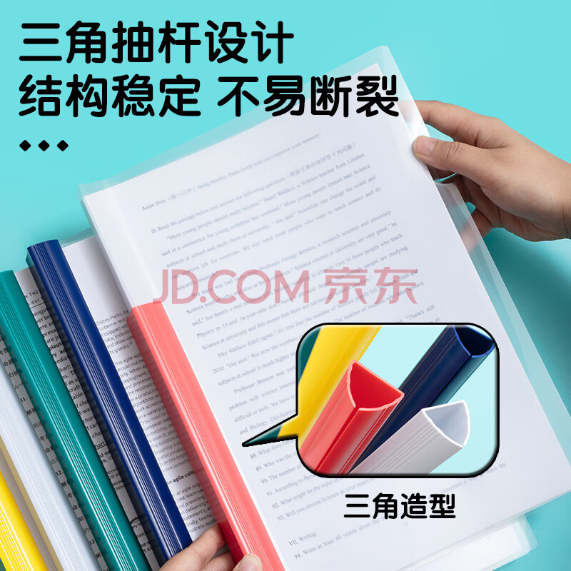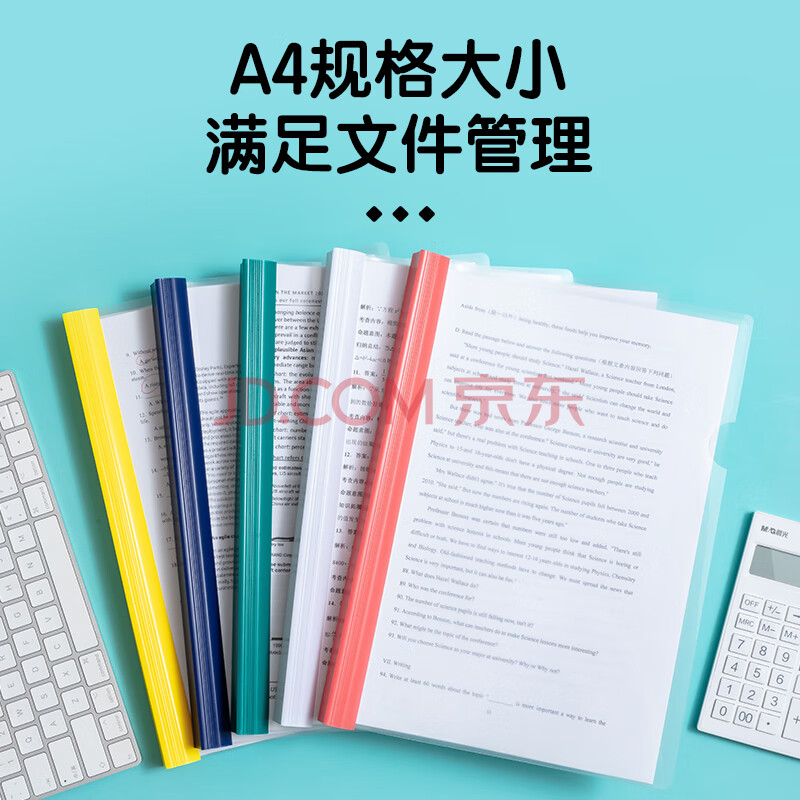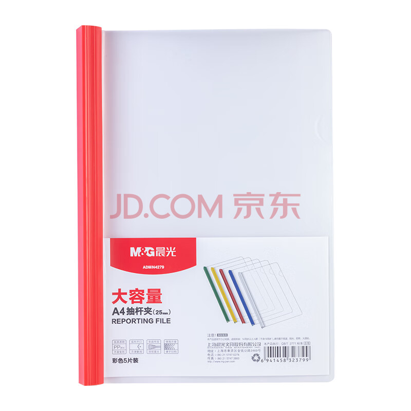 商品相册:晨光(M&G)文具 A4/25mm透明彩色抽杆夹 大容量办公报告夹拉杆夹 学生考试收纳资料文件夹 5个装ADMN4279第
