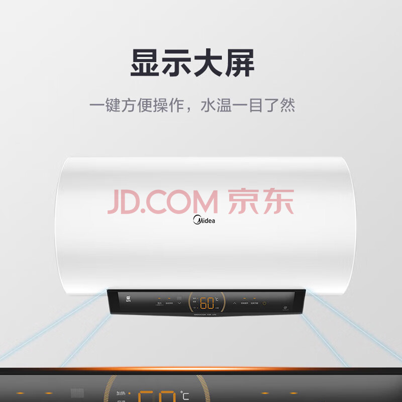 商品相册:美的 60升储水式电热水器 一级变频速热大水量健康洗无缝内胆WIFI京东小家F6021-JA1(HEY)第