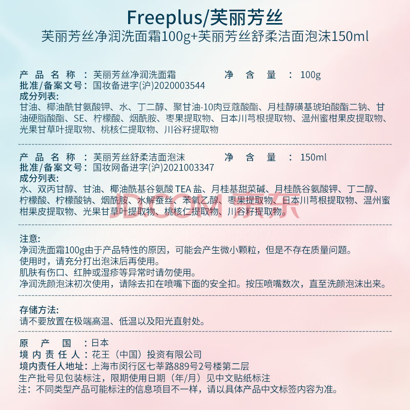商品相册:芙丽芳丝(Freeplus)洗面奶男女士氨基酸洁面100g+泡沫慕斯150ml生日礼物送男女朋友第