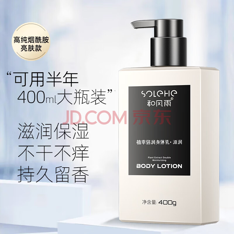 商品相册:和风雨补水保湿身体乳男女士滋润不痒润肤霜400g 嫩肤提亮凡士林留香第