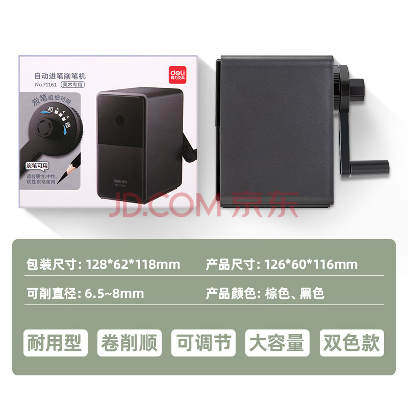 商品相册:得力(deli)美术素描炭笔专用削笔机7档粗细调节自动进笔转笔刀削笔刀儿童学生文具考试生日开学礼物黑 第