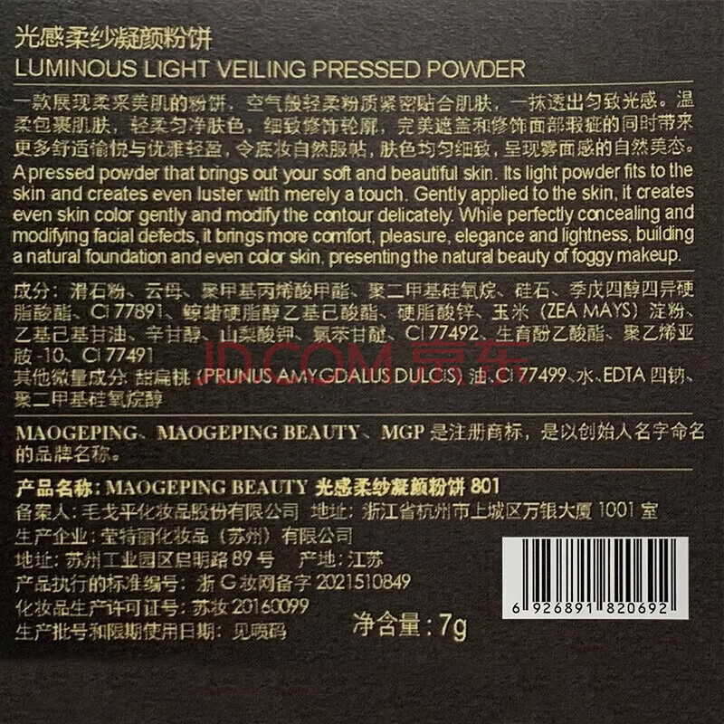 商品相册:毛戈平光感柔纱凝颜小金扇粉饼802自然色7g修容定妆遮瑕生日礼物送女友第